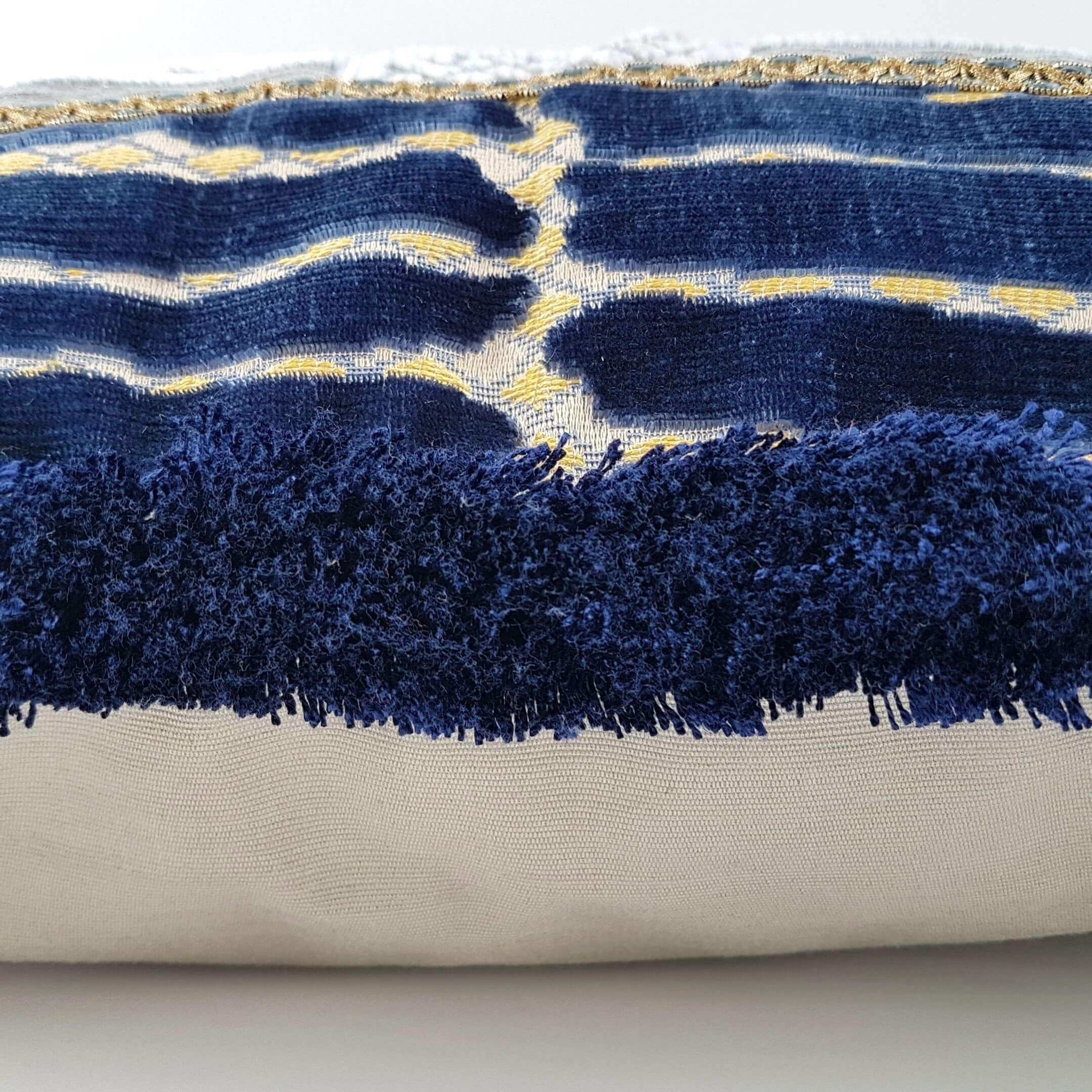 Handmade Decorative Pillow With Brush Fringe Blue Modern Art Rubelli Velvet With Luigi Bevilacqua Framed Front Panel