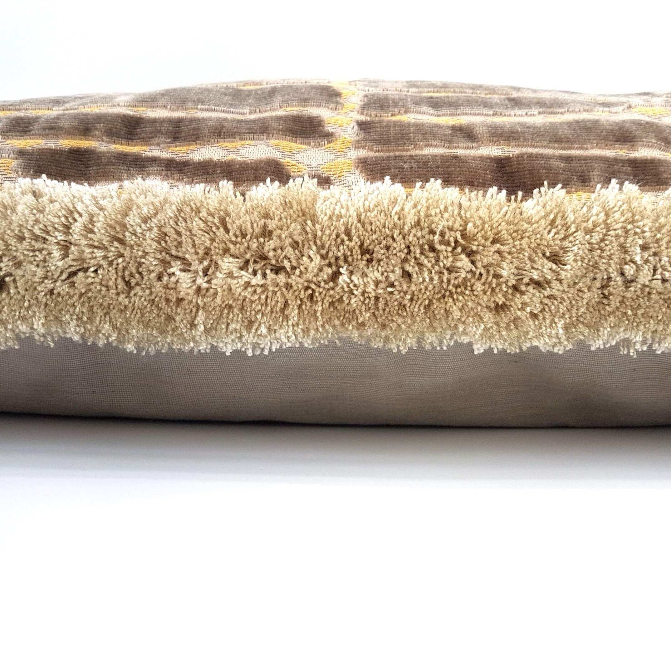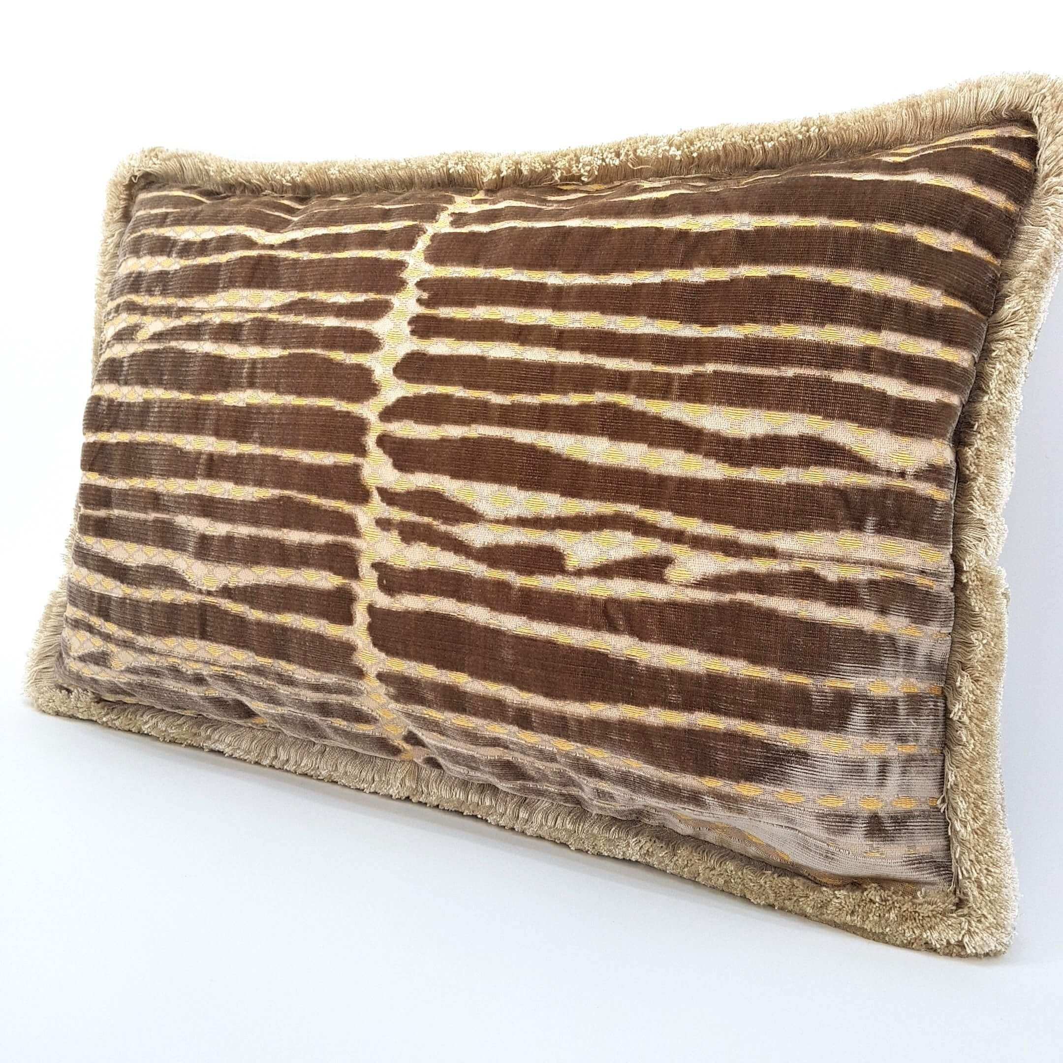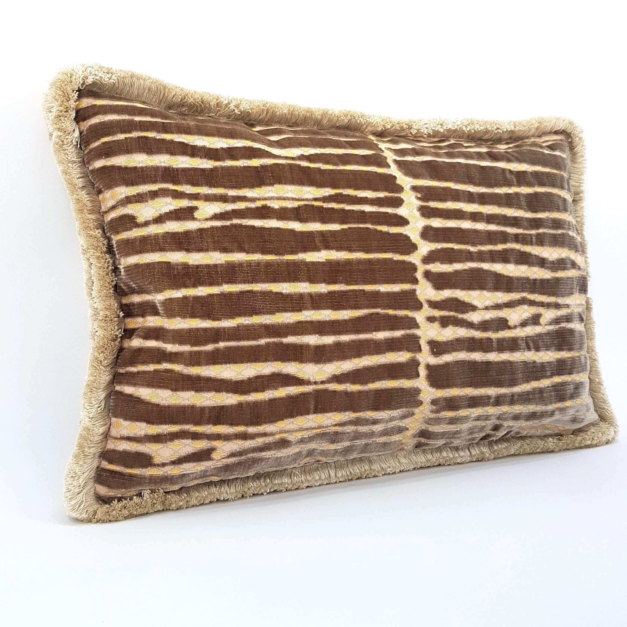 Handmade Decorative Pillow Made With With Brush Fringe Mother of Pearl Jacquard Velvet Rubelli Fabric Modern Art Pattern