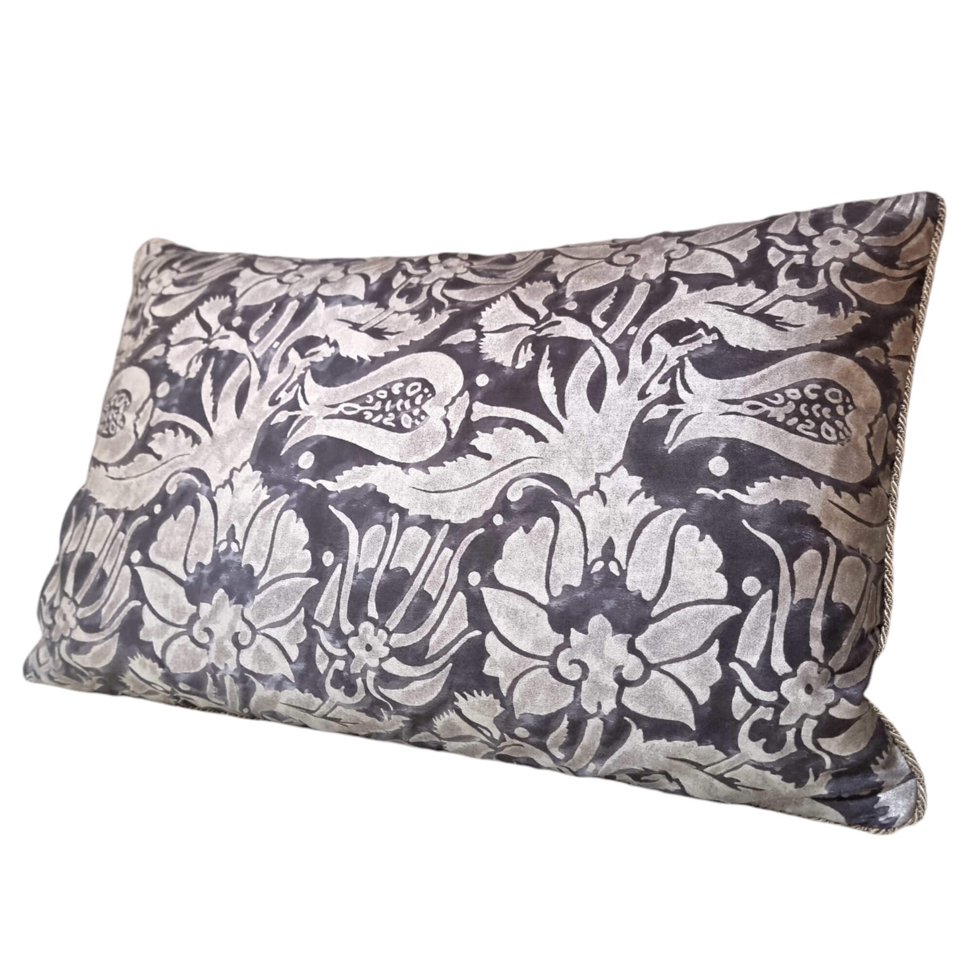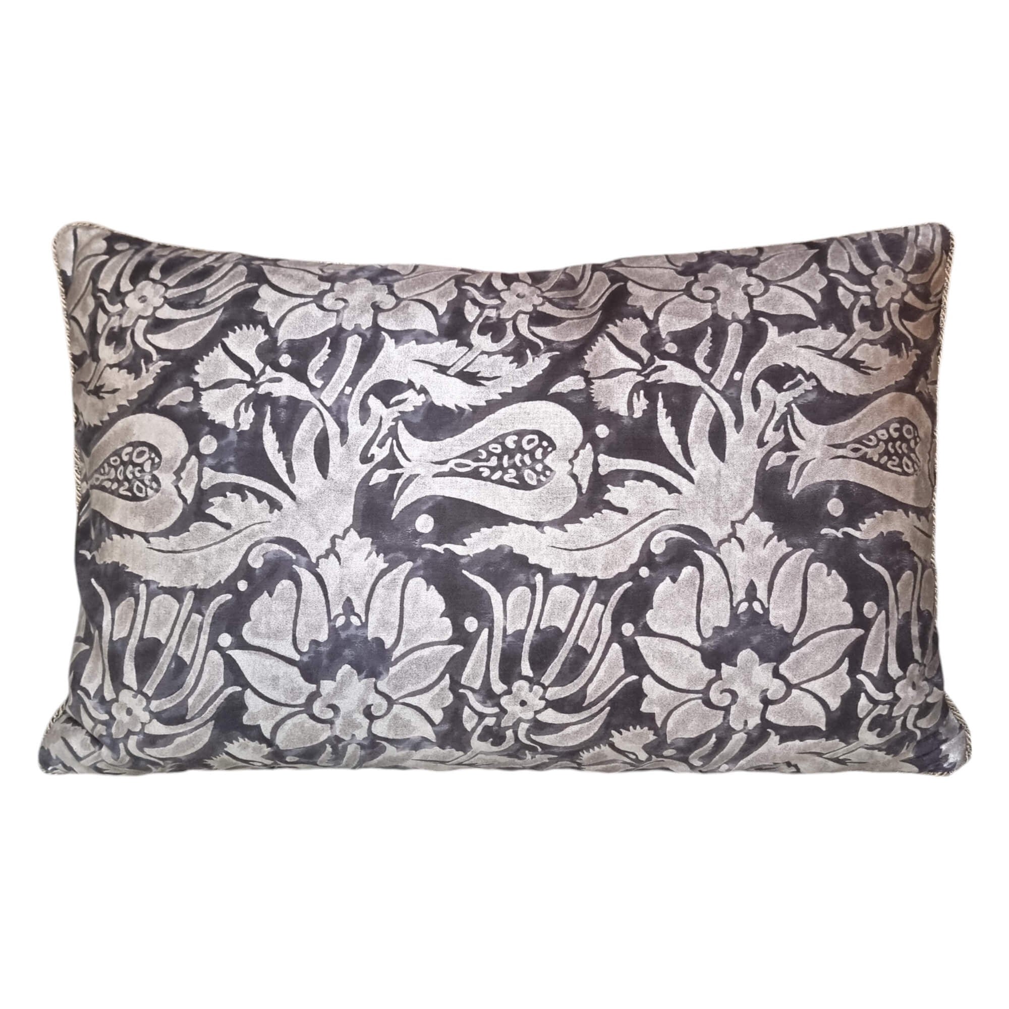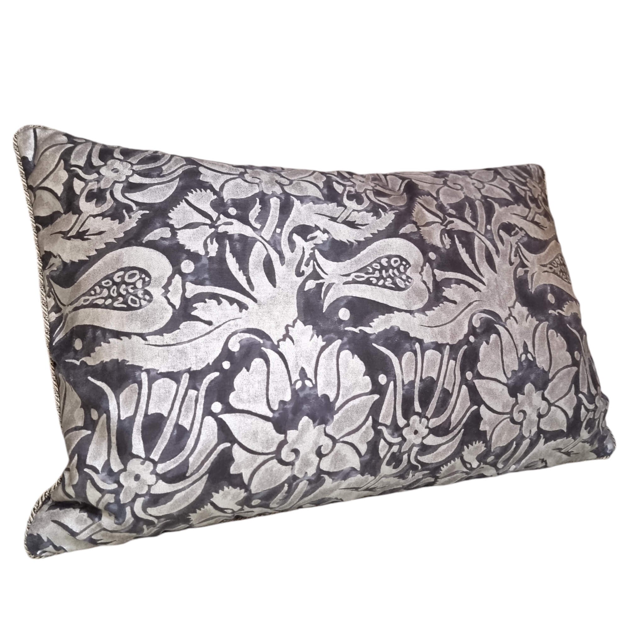 Handmade Decorative Pillow Made With Fortuny Fabric – Black & Silver Melagrana Pattern