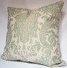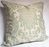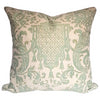Handmade Decorative Pillow Made With Fortuny Fabric – Celadon Green & Beige Carnavalet Pattern