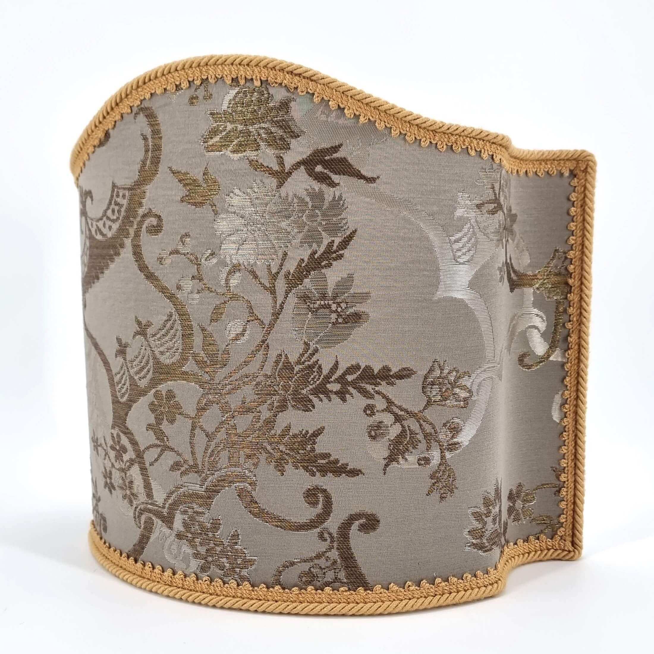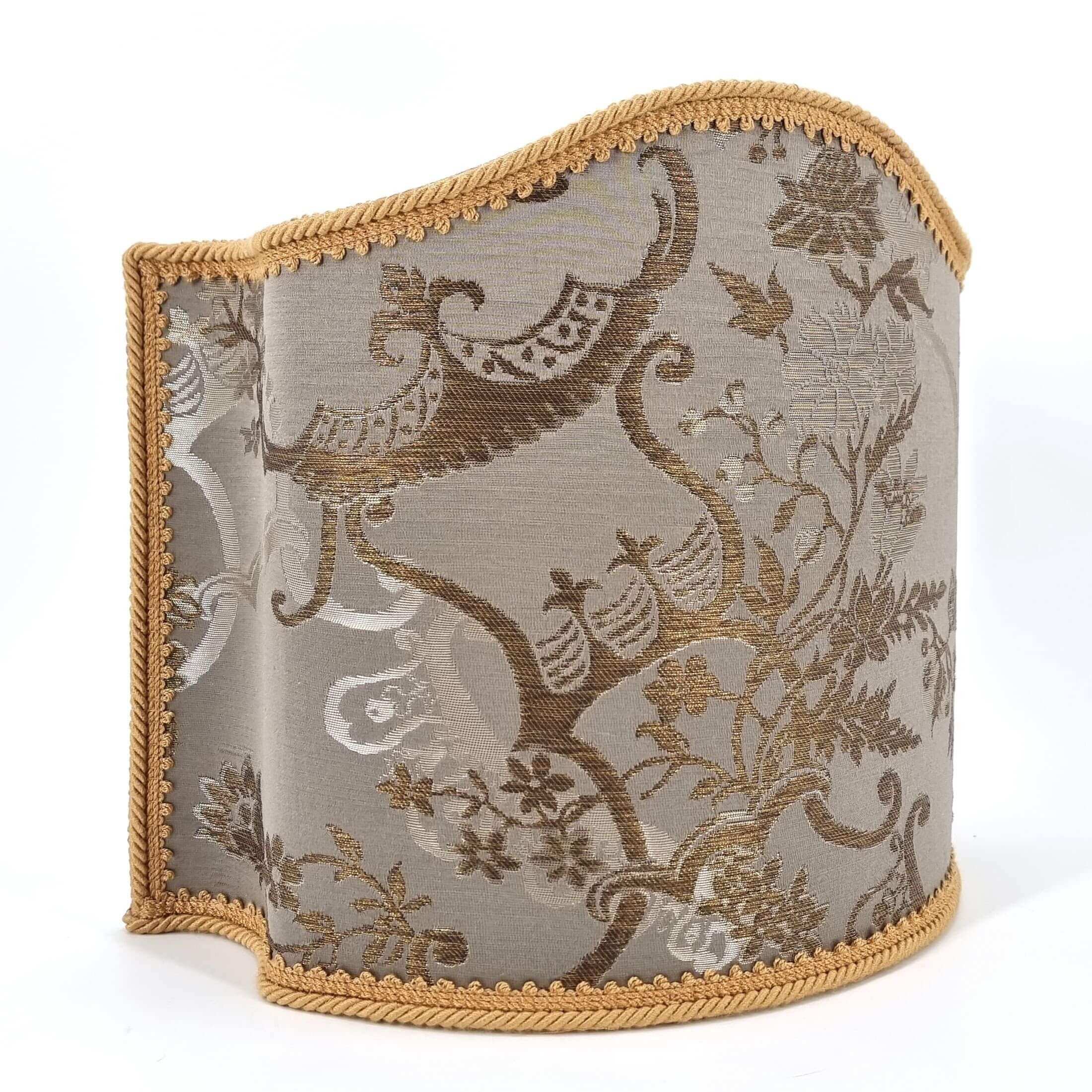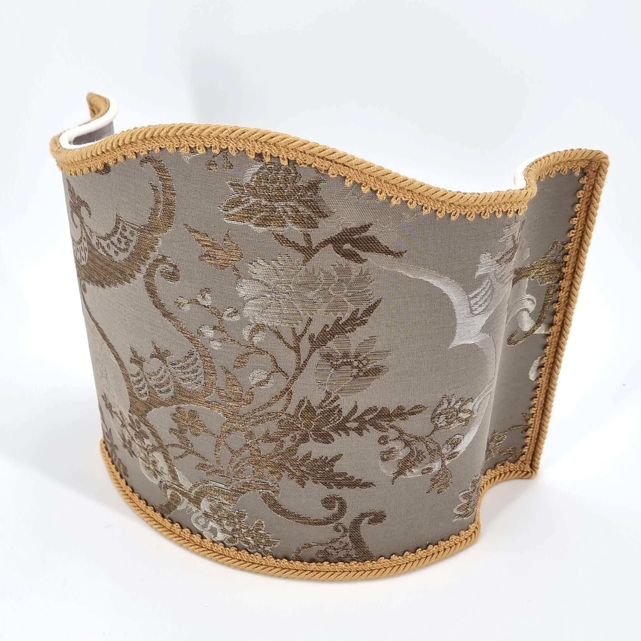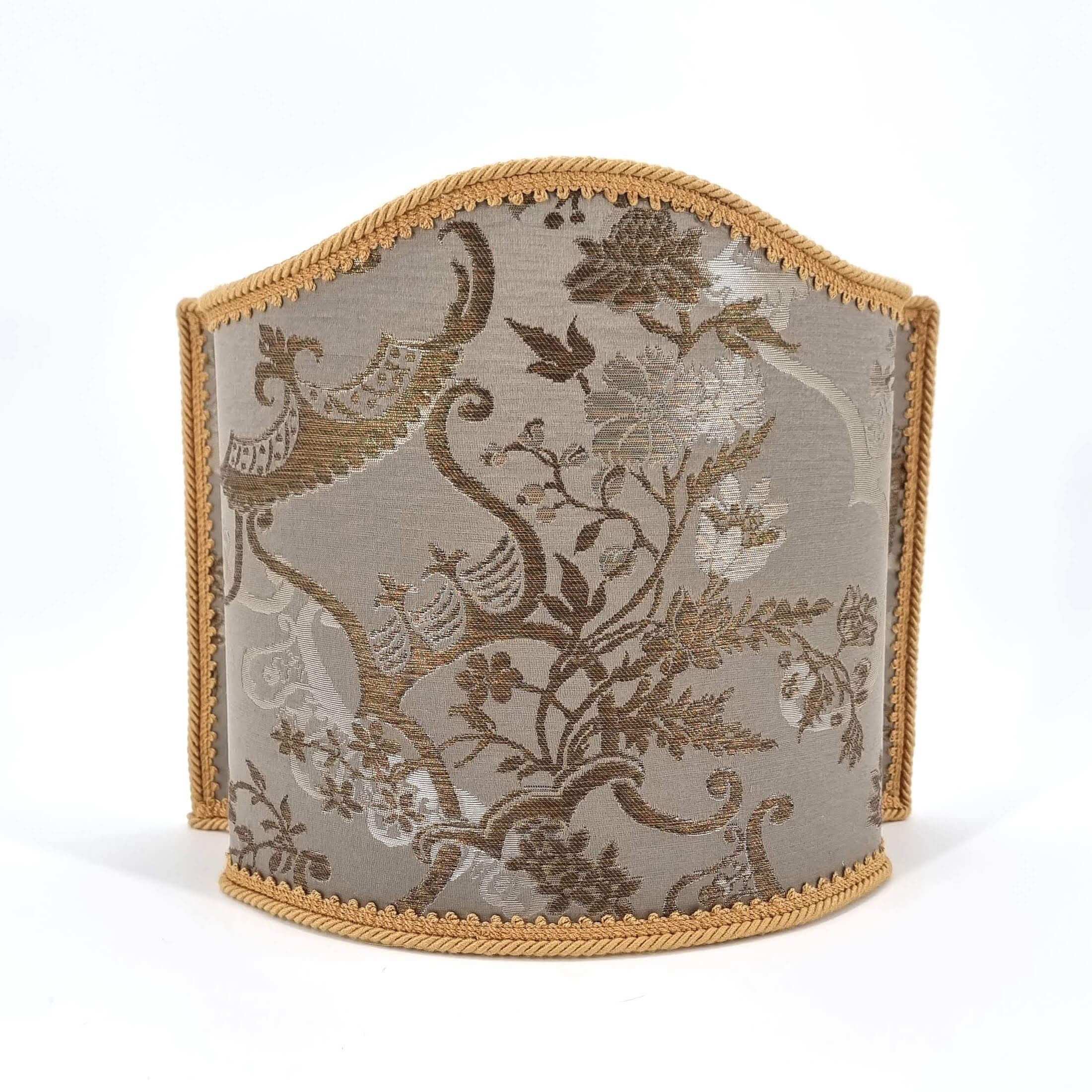 This customizable Venetian lampshade is handmade using Rubelli silk lampas - Madama Butterfly pattern - in silver color, finished with gold cord