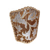 This pretty venetian clip on shield shade is handmade using Rubelli silk jacquard fabric - Les Indes Galantes pattern -  in bronze and silver color, finished with gold trim, with a fitting that clips under the light bulb